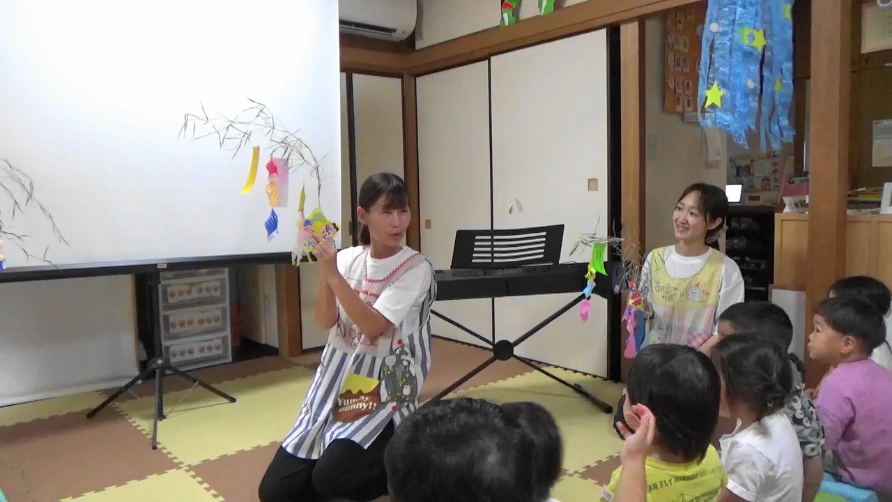 7月4日、七夕集会をしました。 先生から織姫と彦星の話をきいて、