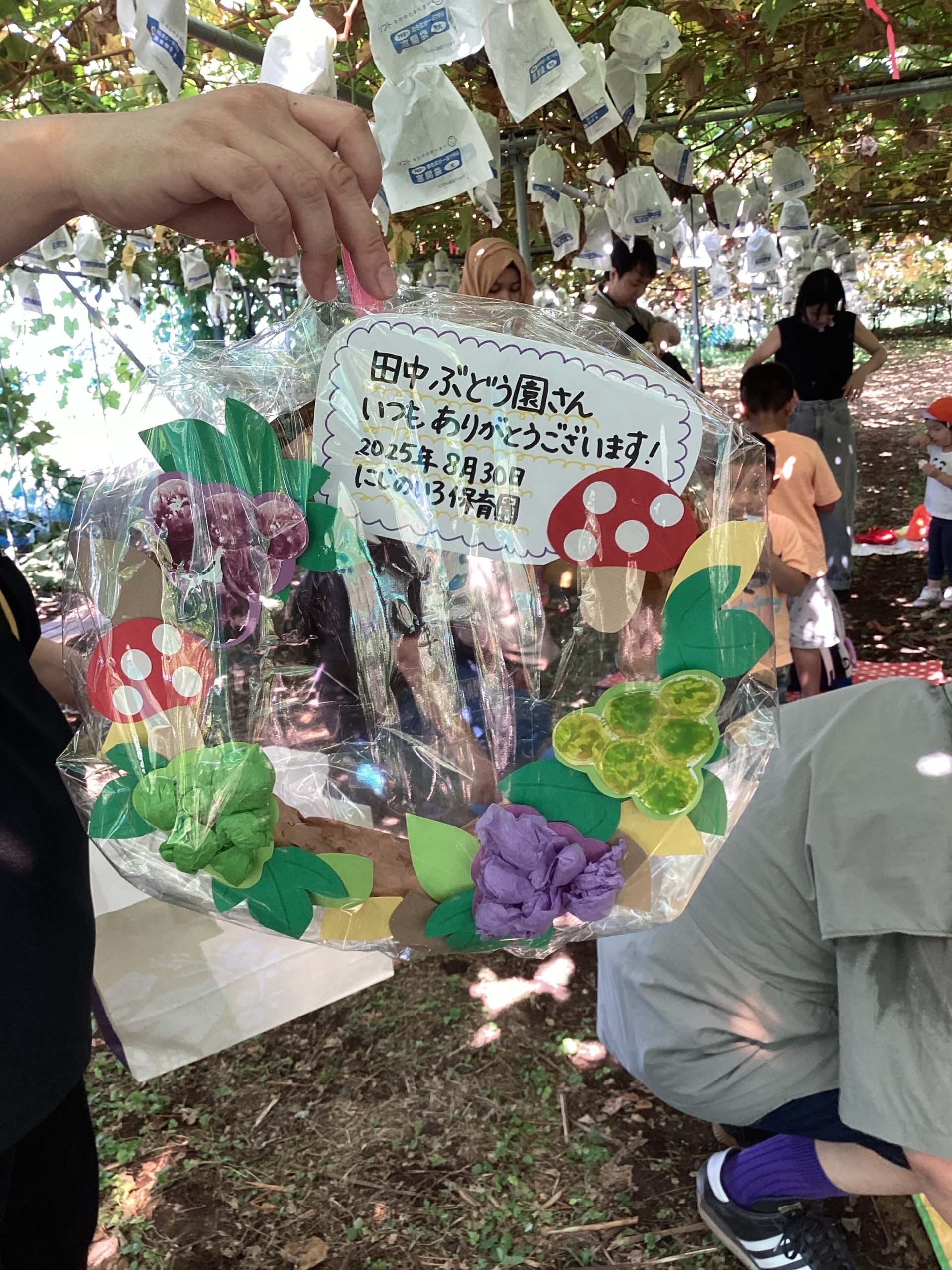 帰りにぶどう園の方に保育園で作ったリースをプレゼントしました。